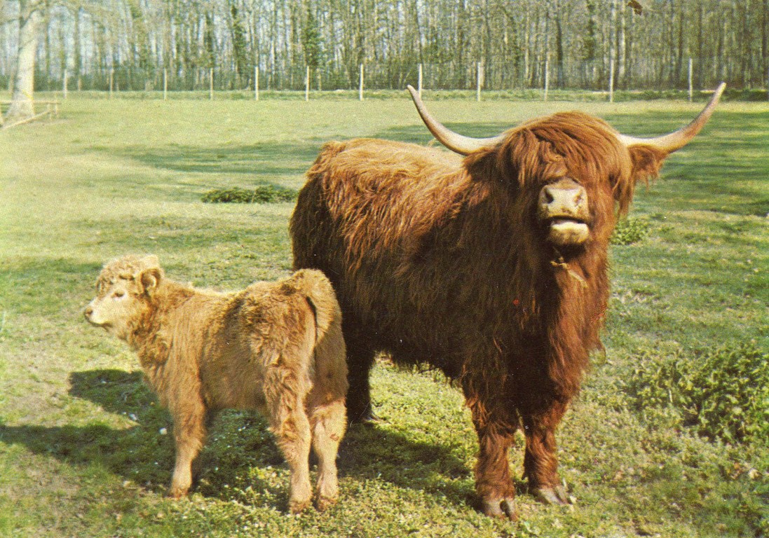 Vache écossaise et son petit - 1982