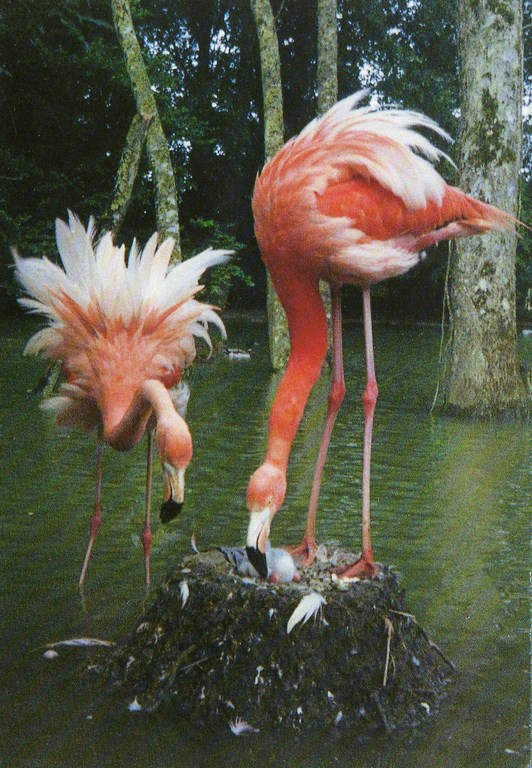 Flamants de Cuba et leur nouveau né