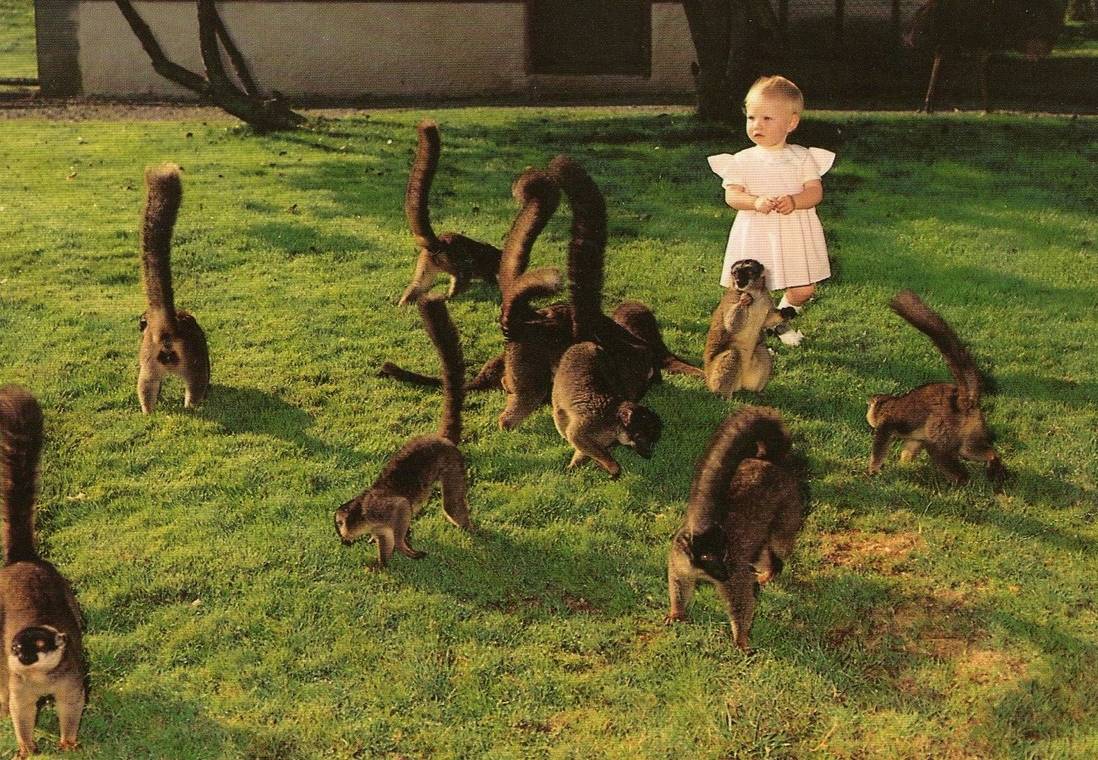 Lémurs bruns en liberté avec Caroline - 1987