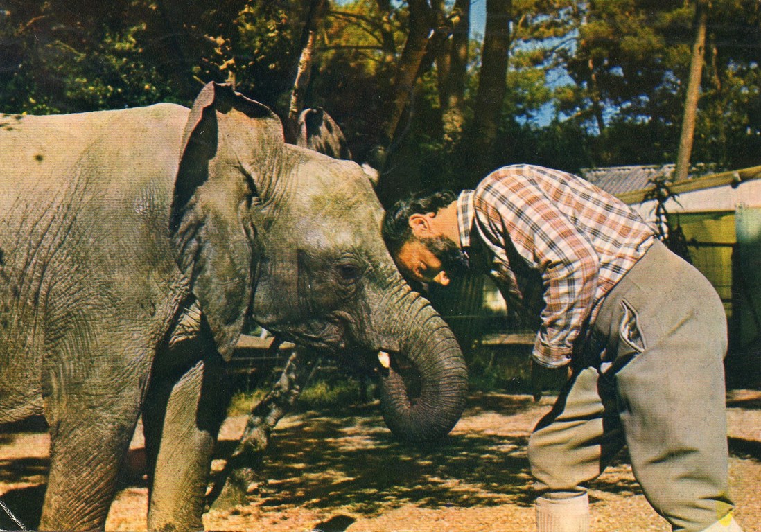Jacques Bouillault et son éléphante africaine "Dinga" - 1978