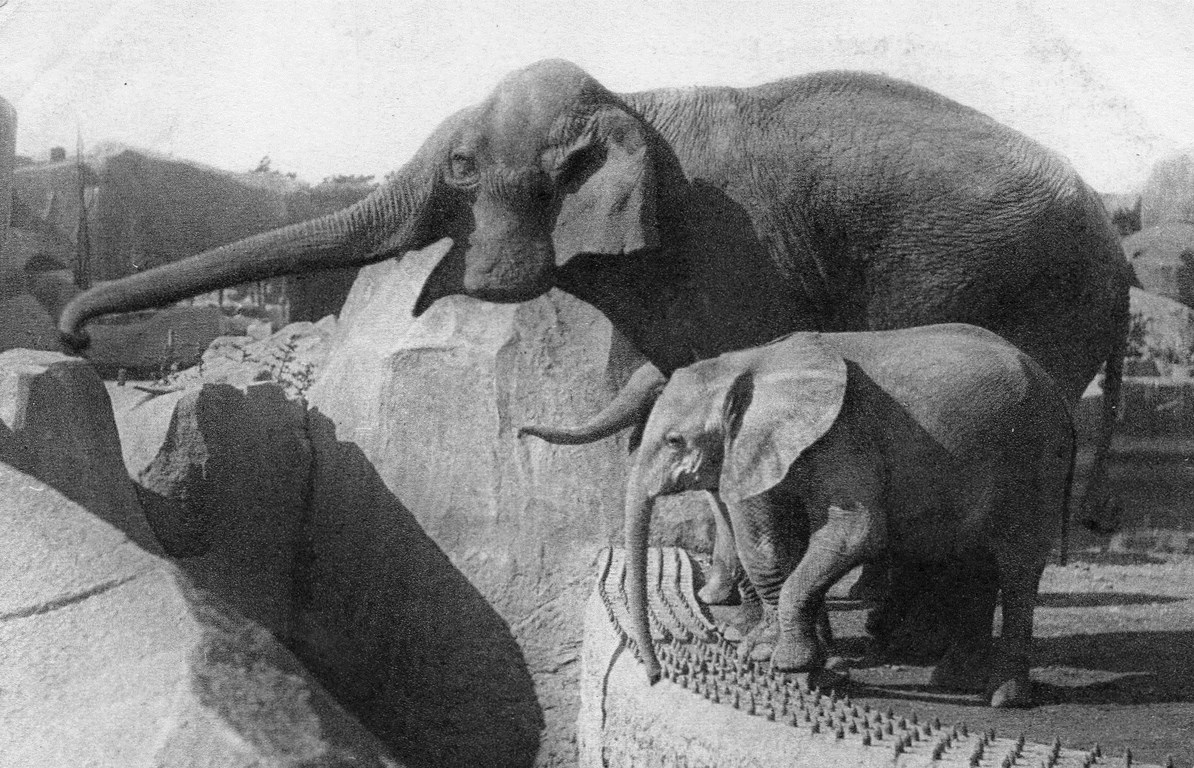 Un Eléphant d'Asie femelle et "Micheline", Jeune Eléphant d'Afrique
